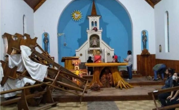 The scene after local indigenous residents attacked a Catholic Church in Rio Negro, Argentina, in 2020. Source: Tradition in Action.